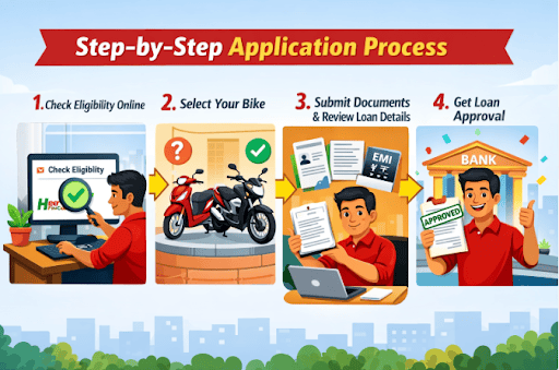 Hero FinCorp provides a bike loan for mobile businesses that supports people who use two-wheelers for their professions. A two-wheeler loan for delivery riders or mobile entrepreneurs helps them own a two-wheeler without spending their entire savings on a single asset.