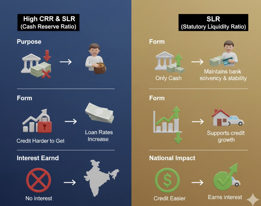 CRR and SLR are essential for understanding why loan interest rates fluctuate, why credit availability tightens at certain times, and how the Reserve Bank of India (RBI) manages inflation and liquidity.