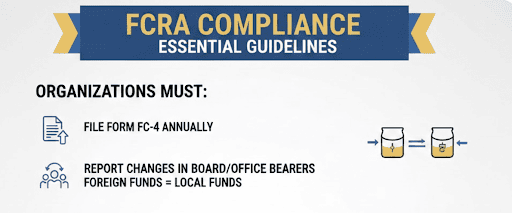 • Usage Cap: Organizations cannot spend more than 20% of their foreign funds on administrative expenses such as salaries, rent, etc. This ensures 80% goes to the actual cause.