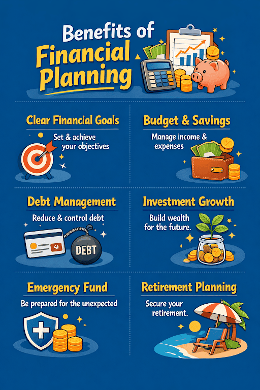 Financial planning, when done carefully, can secure your financial future and help you achieve your financial goals, such as building an emergency fund, managing debt, and creating a budget.