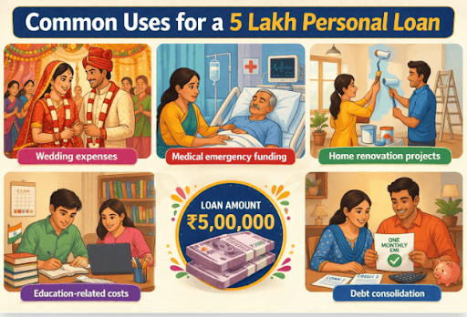 A 5 lakh personal loan can be used for several financial needs, as they are unsecured and do not require much documentation: