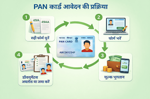 अब समझते हैं पैन कार्ड आवेदन प्रक्रिया और पैन कार्ड दस्तावेज़ जमा करना कैसे करें।