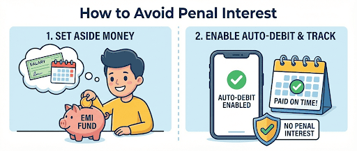 The only way to avoid paying penal interest is to clear your EMI due on time. To do this: