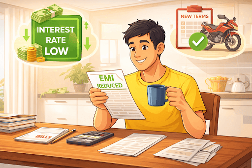 Two-wheeler refinancing can lower monthly outflows by adjusting the interest rate or extending the tenure.
