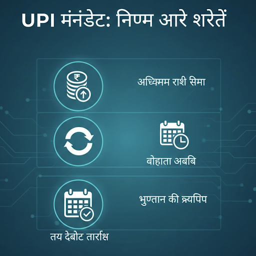 UPI मैंडेट से जुड़ी प्रमुख शर्तें इस प्रकार हैं: