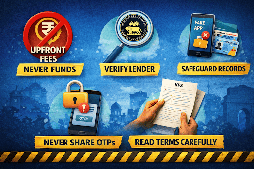 - Safeguard Your Records: Aadhaar, PAN, bank statements, and other personal documents should never be shared without first confirming with the lender.