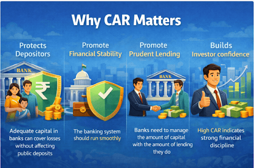 The capital adequacy ratio helps assess the financial system stability of a financial institution as seen by its regulators. CAR serves as a safety net for both banks and depositors.