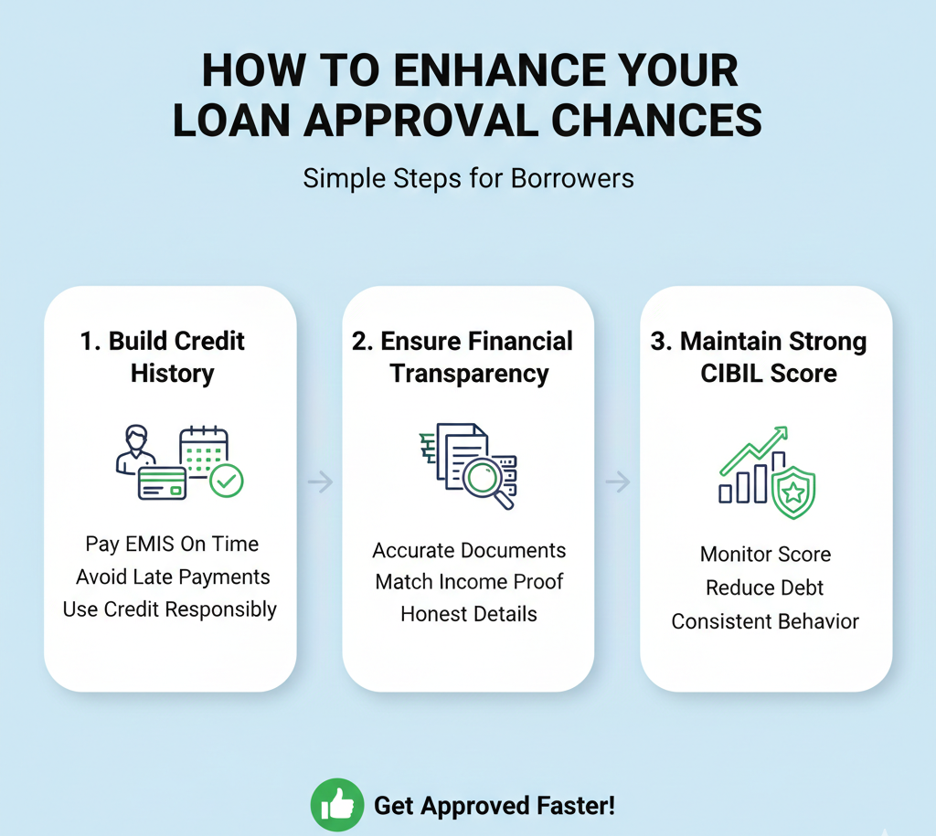Your credit history shows how you treated past loans when no one was watching. Paying EMIs on time and avoiding unnecessary borrowing builds trust over time. Lenders feel more comfortable approving loans when they see steady behaviour, not sudden changes.
