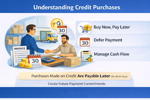 So, what is a credit purchase in simple terms? It means you buy goods or services today and commit to paying your supplier within a specified number of days. You receive the goods immediately, but the cash outflow happens later. This works well when your sales cycle is longer than your purchase cycle.