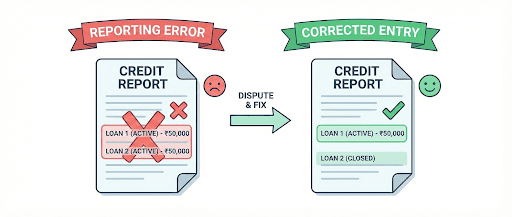 Credit repair is the process of taking steps to correct your credit report so that it reflects your actual financial behaviour. This is in no way a means to hide missed payments or willful defaults. The process primarily revolves around the following: