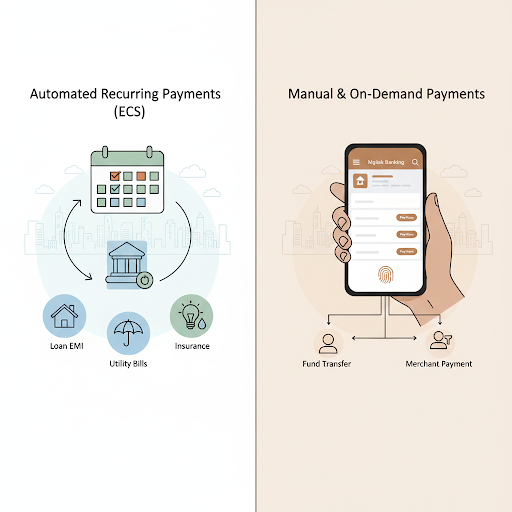 The Electronic Clearing System (ECS) is an RBI-regulated, paperless payment mechanism that enables automatic, recurring transfers between bank accounts. It is commonly used for EMIs, insurance premiums, utility bills, and subscriptions.