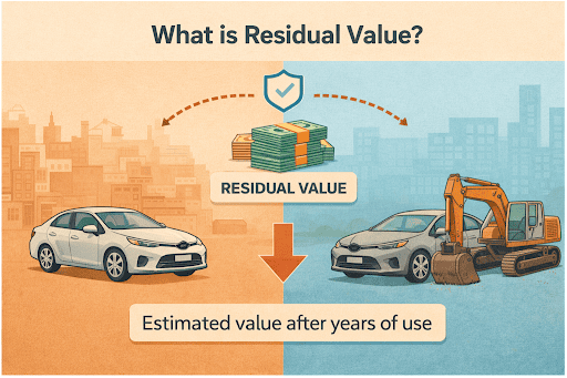 Assets such as cars, machinery and equipment lose value gradually due to usage, age and changing market demand. This fall in value is called depreciation. The amount that remains after this decline is the residual value.